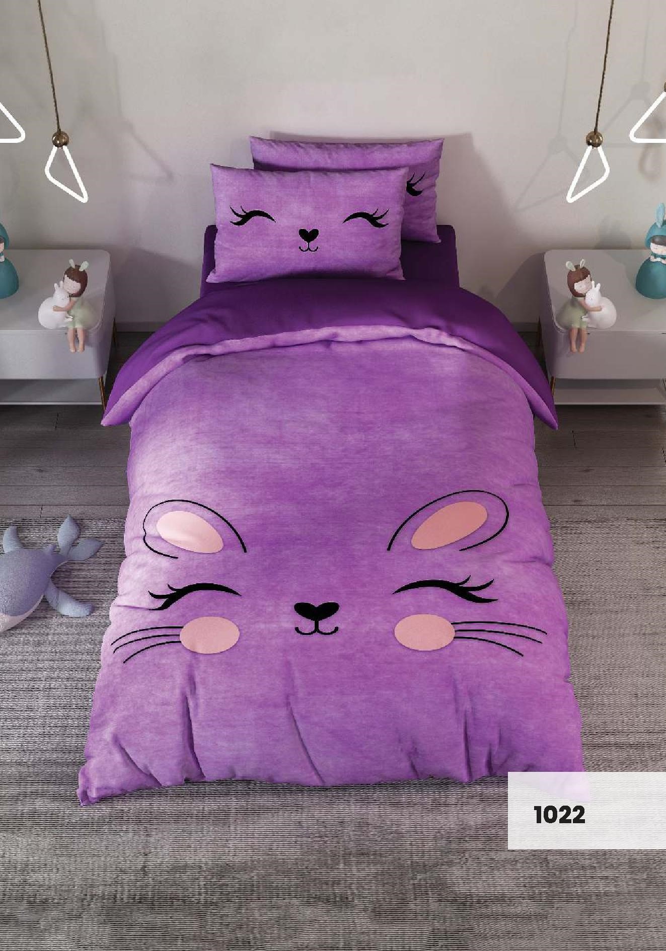 روتختی سه بعدی یک نفره طرح خرگوش بنفش مدل 1022 کارینا 5 تکه سایز 120x200