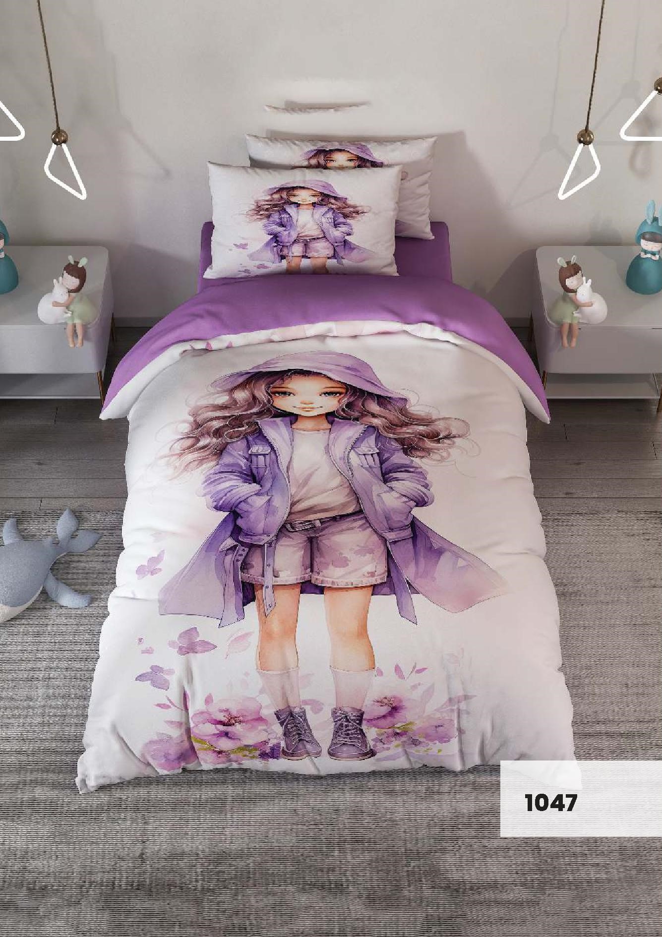 روتختی سه بعدی یک نفره طرح دخترونه مدل 1047 کارینا 5 تکه سایز 120x200