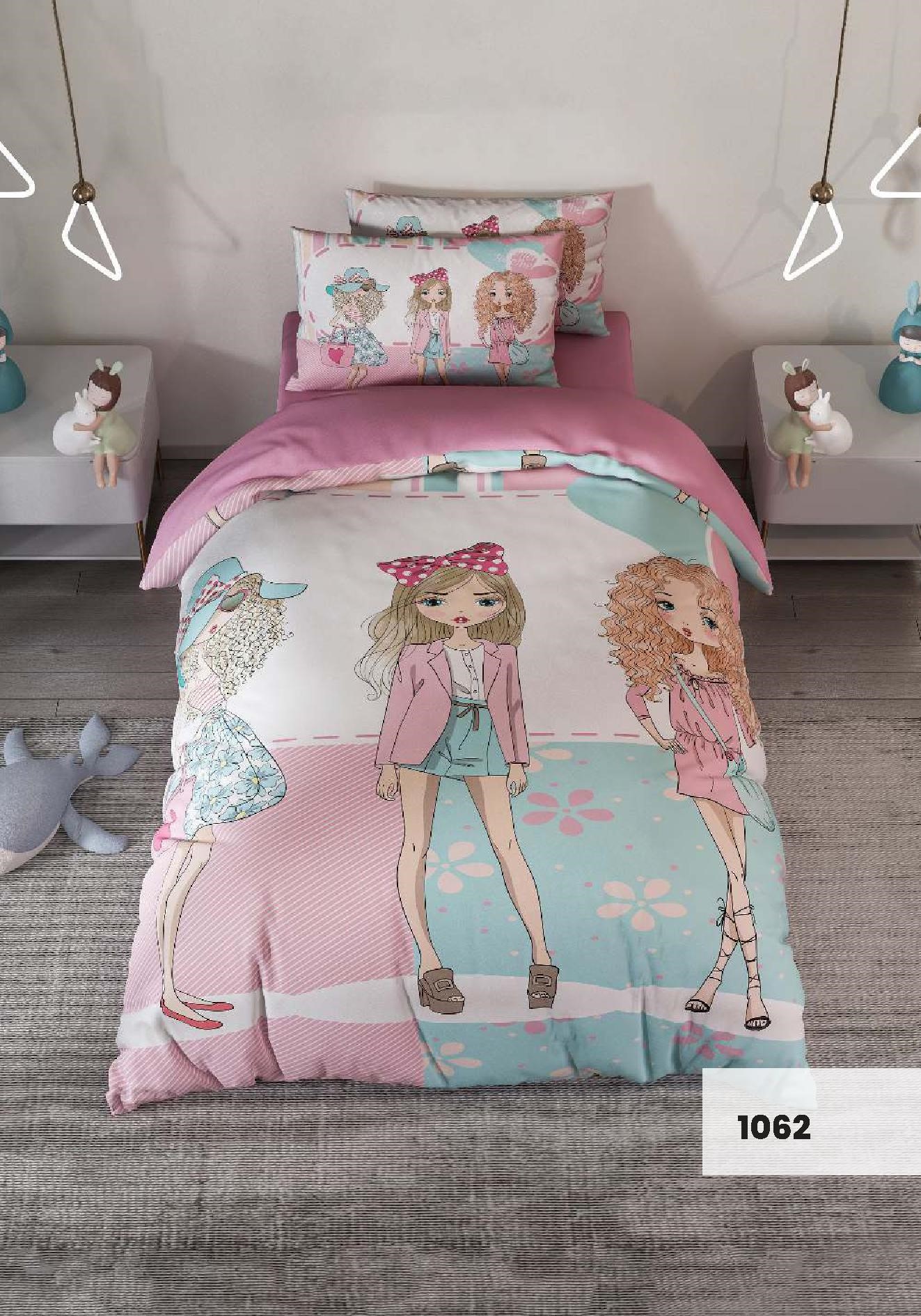 روتختی سه بعدی یک نفره طرح دختر مو فر مدل 1062 کارینا 5 تکه سایز 120x200