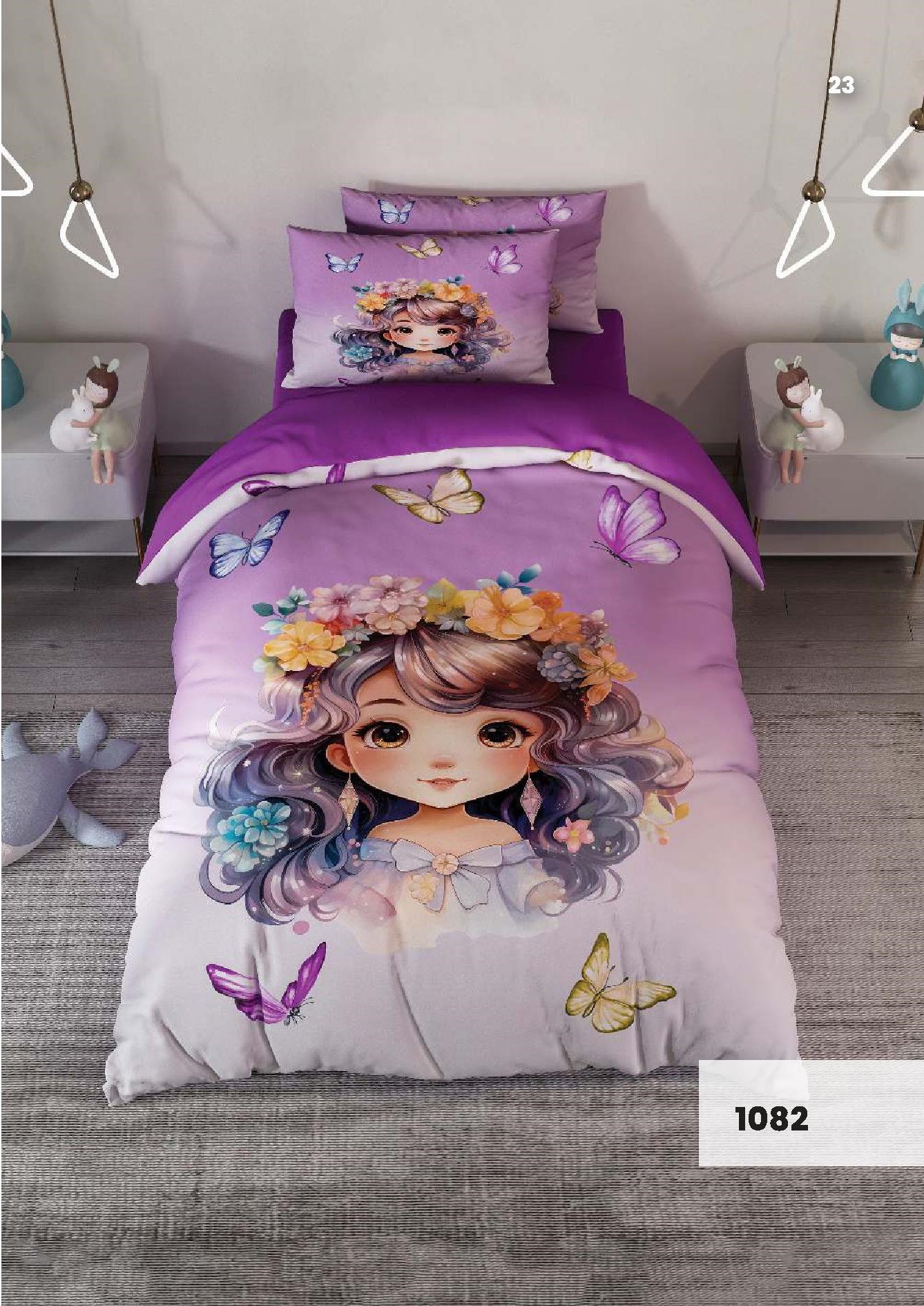 روتختی سه بعدی یک نفره طرح دخترونه مدل 1082 کارینا 5 تکه سایز 120x200