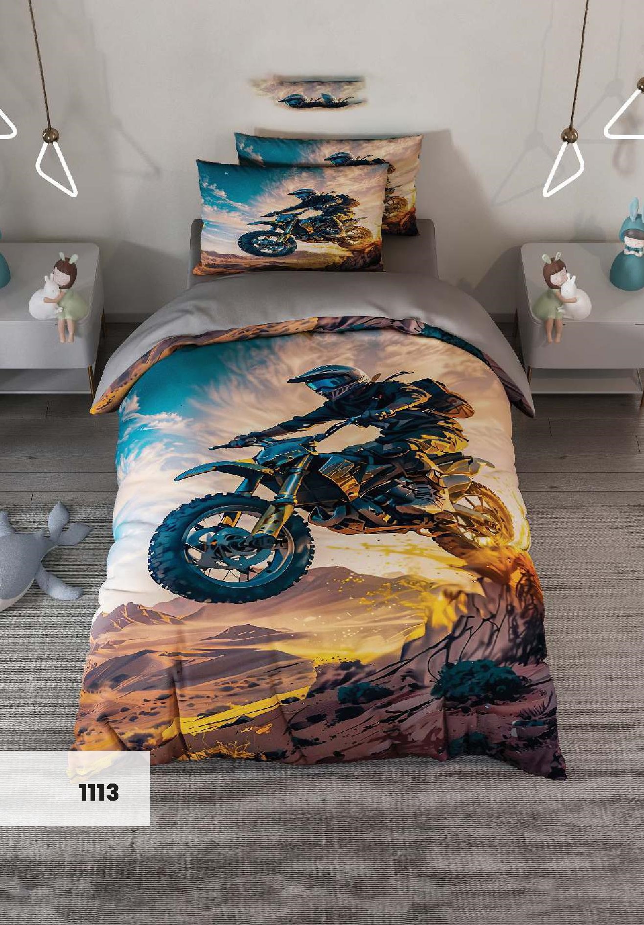 روتختی سه بعدی یک نفره طرح موتور تریل مدل 1113 کارینا 5 تکه سایز 120x200