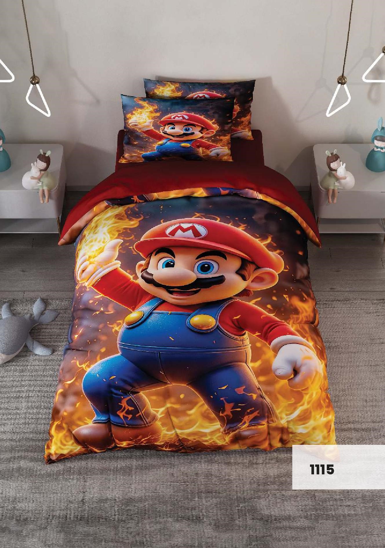 مشخصات روتختی سه بعدی یک نفره طرح سوپر ماریو مدل 1115 کارینا 5 تکه سایز 120x200