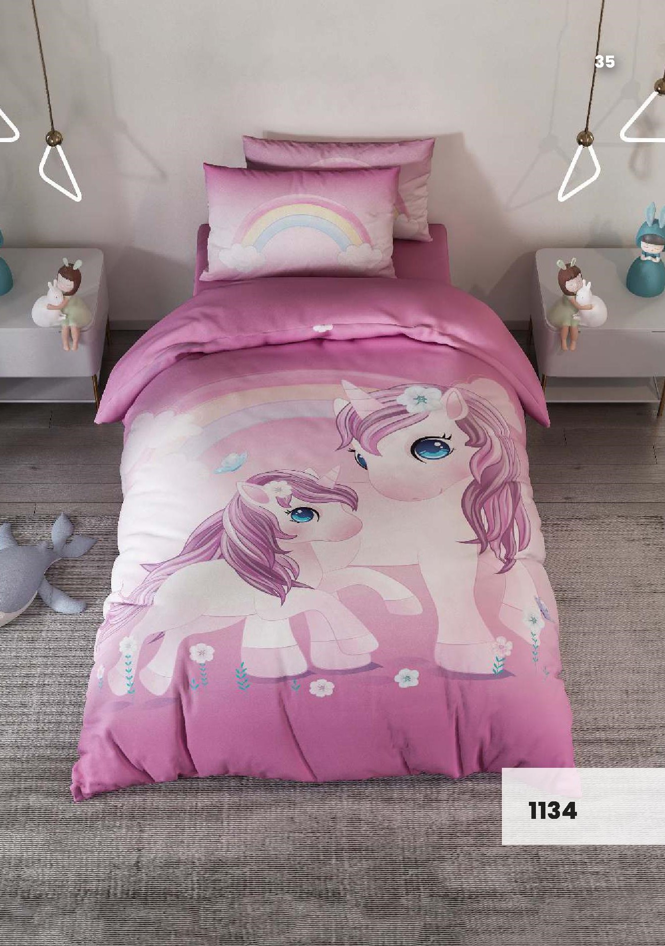 روتختی سه بعدی یک نفره طرح پونی مدل 1134 کارینا 5 تکه سایز 120x200