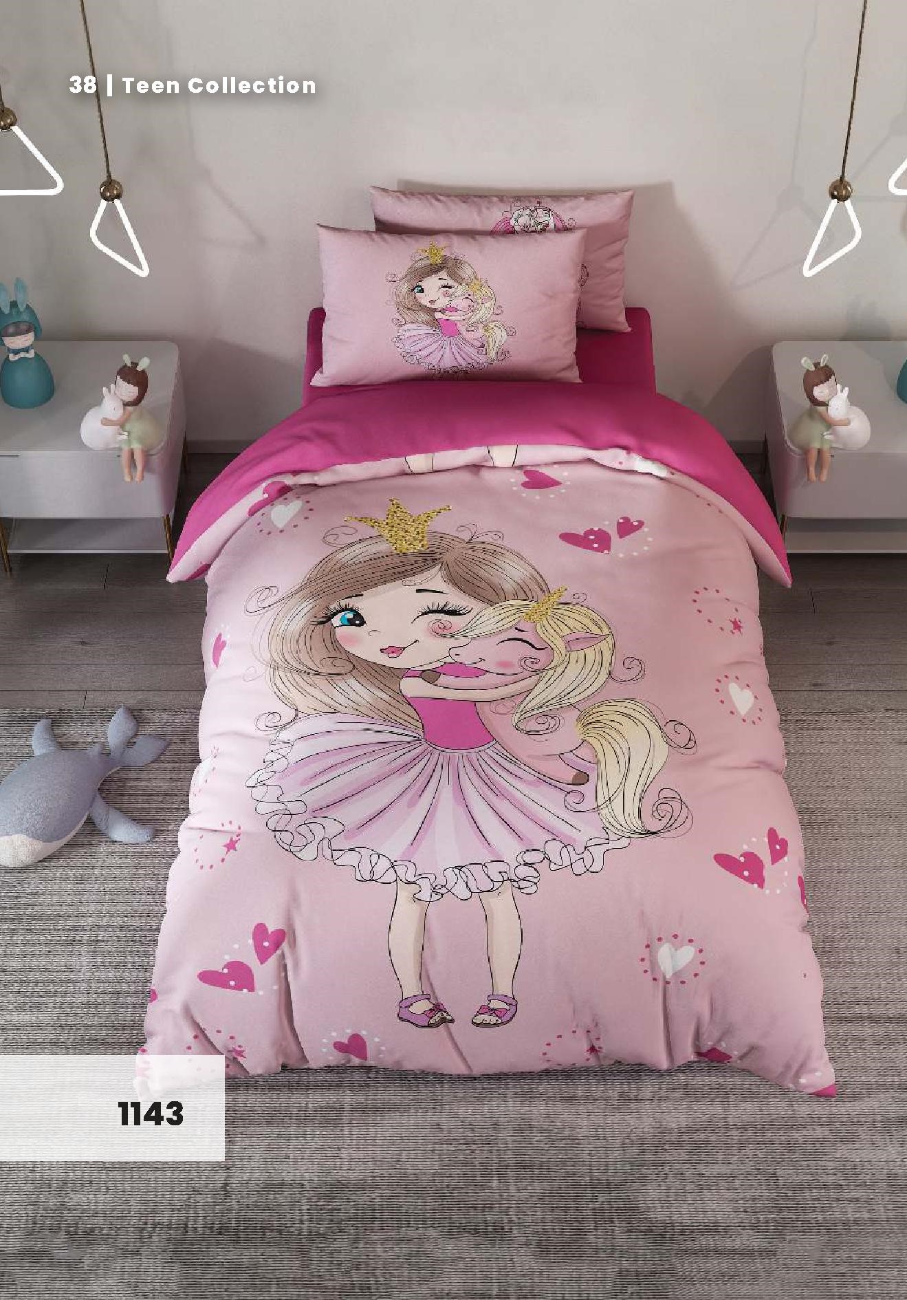 مشخصات روتختی سه بعدی یک نفره طرح دختر پونی مدل 1141 کارینا 5 تکه سایز 120x200