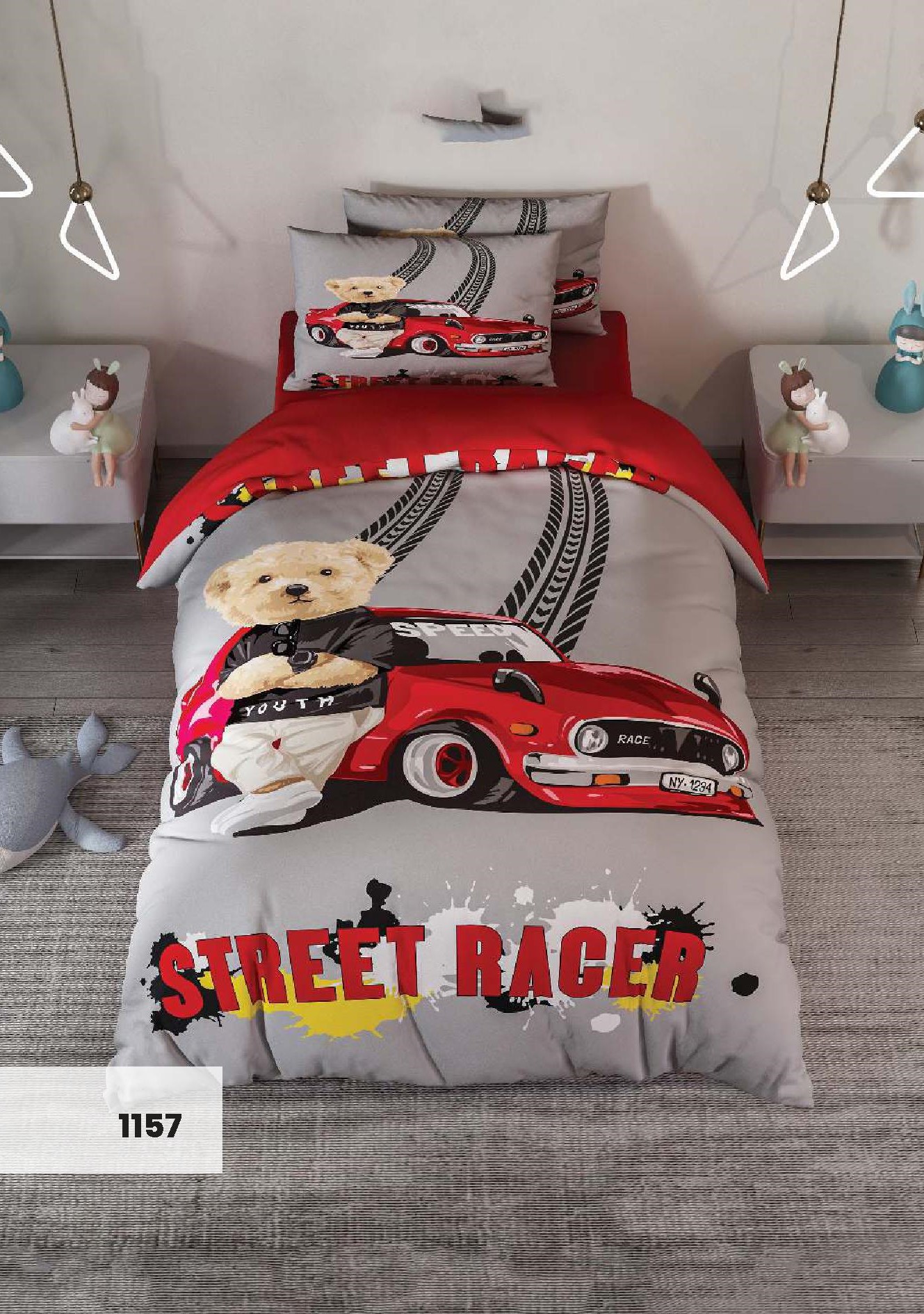 مشخصات روتختی سه بعدی یک نفره طرح تدی ماشین باز مدل 1157 کارینا 5 تکه سایز 120x200