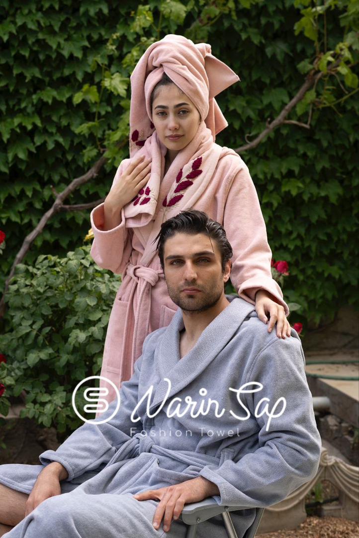 ست حوله عروس و داماد دو قلو 10 تکه narin sap مدل ecco رنگ طوسی و گلبهی سایز M-L M-L M-L