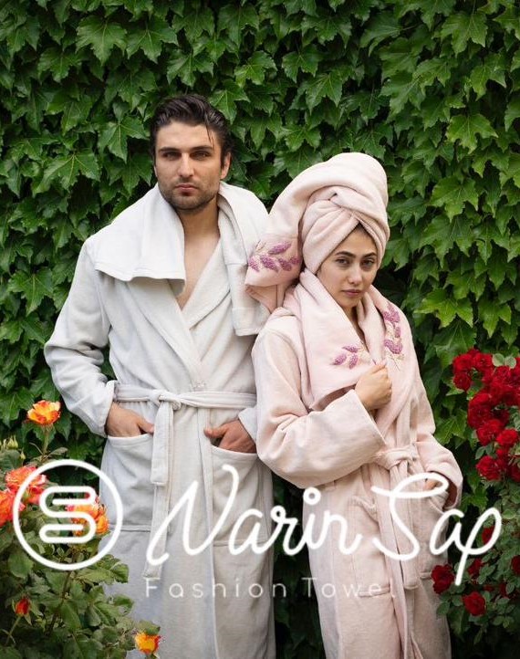 ست حوله عروس و داماد دو قلو 10 تکه narin sap مدل ecco رنگ طوسی روشن و صورتی سایز M-L