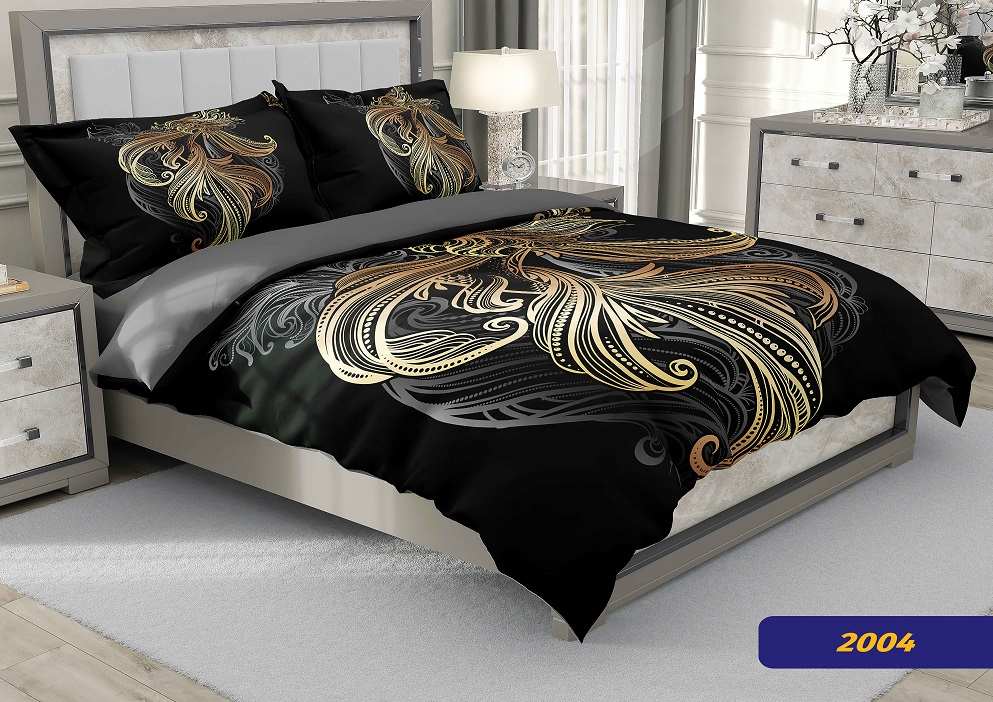 روتختی سه بعدی دو نفره طرح گل مشکی طلایی مدل 2004 کارینا 6 تکه