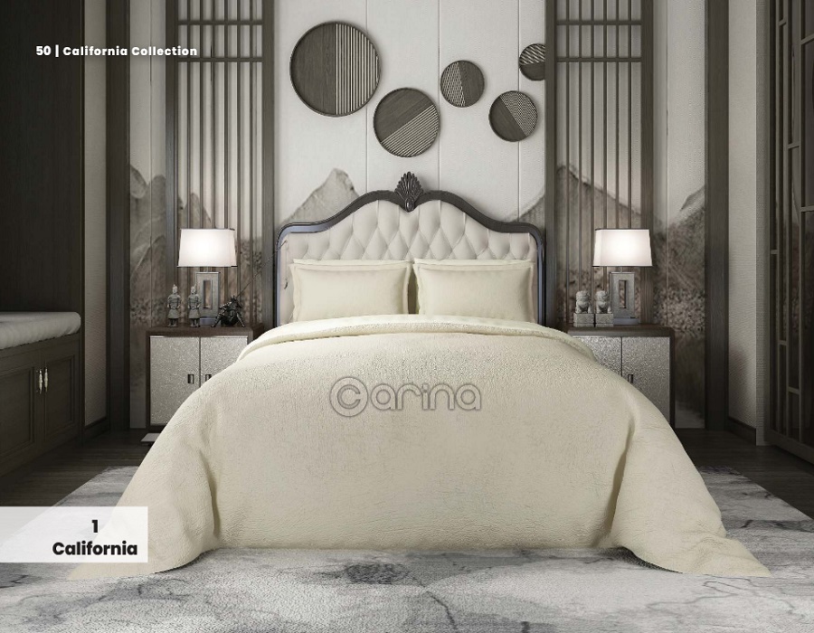 مشخصات روتختی مخمل کالیفرنیا دو نفره کارینا 6 تکه رنگ کرم