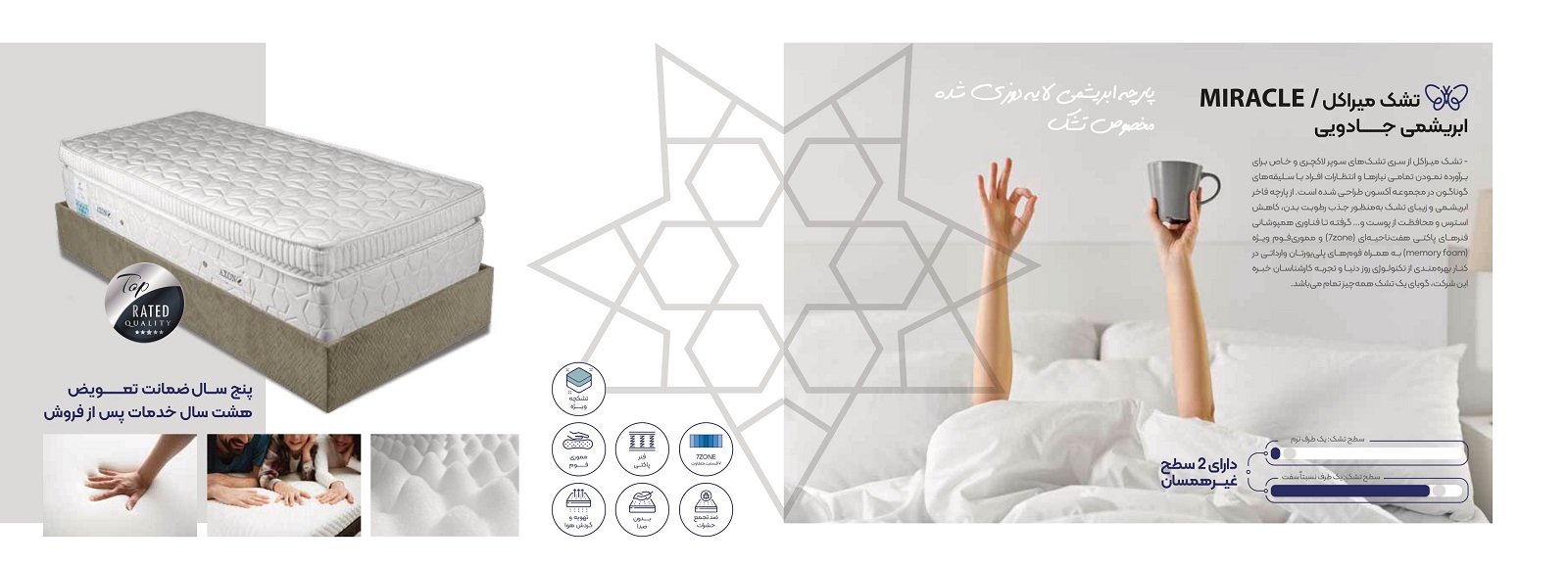 خرید تشک میراکل MIRACLE گزینه ایده آل برای کسانی است که می خواهند از دردهای عضلانی راحت شوند و خواب راحت و با کیفیتی را تجربه کنند.