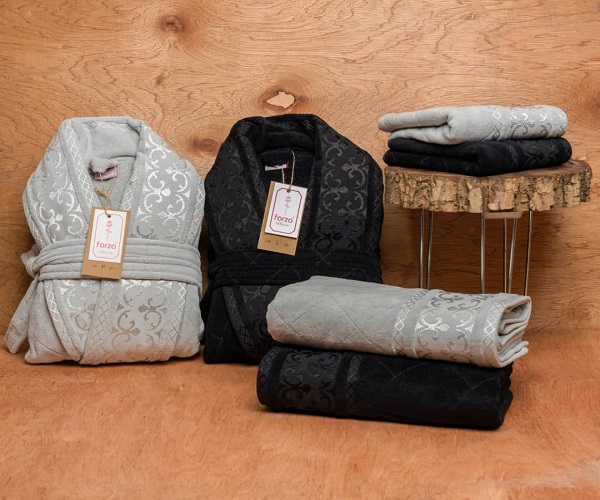 قیمت ست حوله عروس و داماد دو قلو 10 تکه FORZA رنگ مشکی و سبز سدری سایز M-L