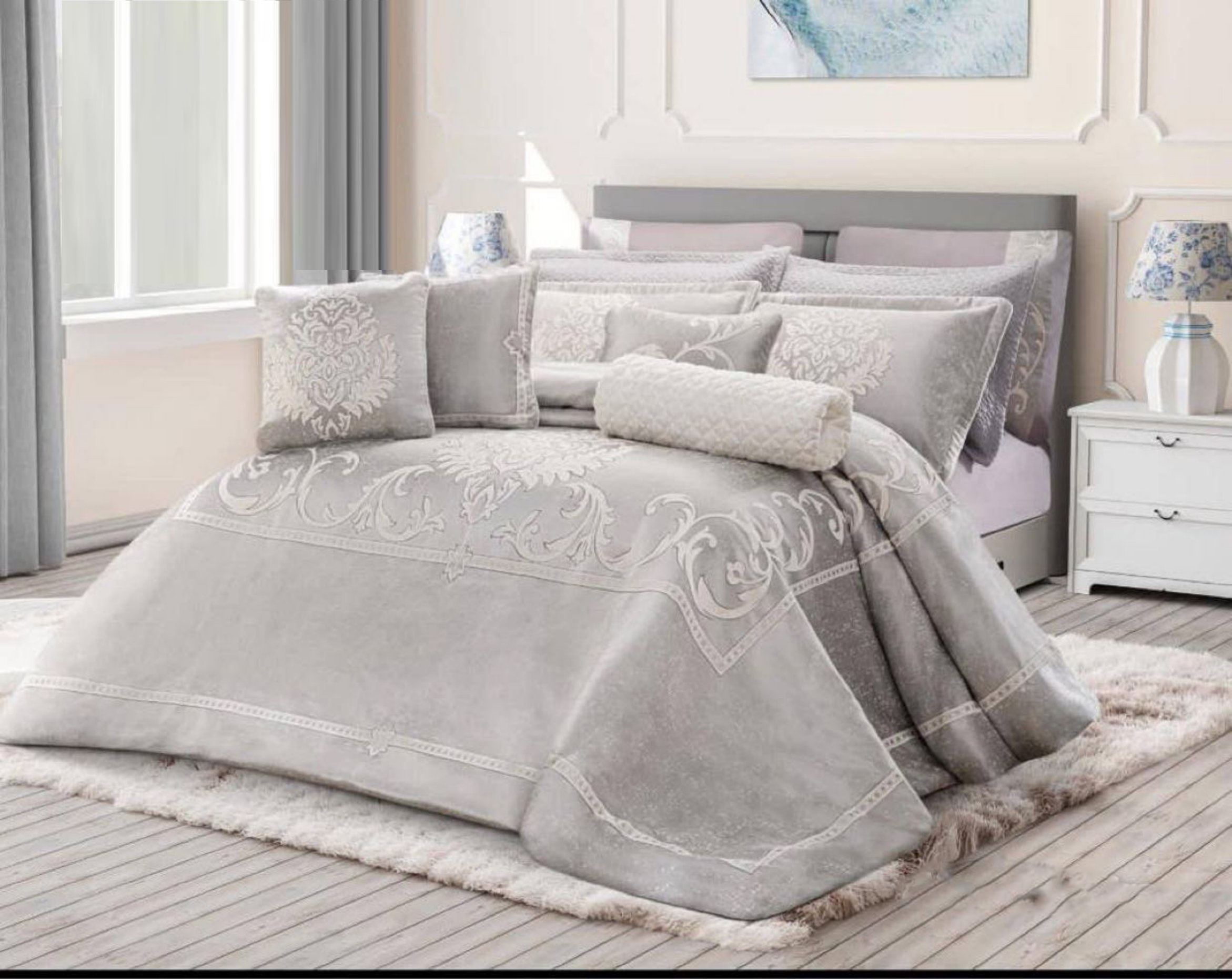 قیمت سرویس روتختی عروس لامیسون کاردلن مدل Monaliza رنگ طوسی روشن دو نفره (کینگ) 7 تکه