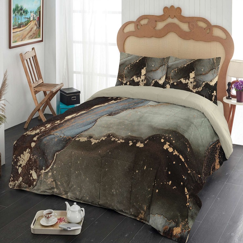 سرویس خواب بالا الیاف پارچه یعنی نخ تُرک، پنبه و پلی استر خالص است که از بروز هر گونه حساسیت جلوگیری می کند. دوخت دقیق و ظریف روتختی اسپرت لومانا نرسی مدل ARTEMIS دو نفره 6 تکه باعث می شود بدون نگرانی از گوله شدن لحاف آن را به راحتی در ماشین لباسشویی با دمای 40 درجه سانتی گراد بشویید و نگران رنگ دادن آن هم نباشید. همچنین این سرویس لحاف، دارای رویه تشک کشدوز و لحاف کاملا دوخت CNC است که بهترین کیفیت دوخت را عرضه می کند.