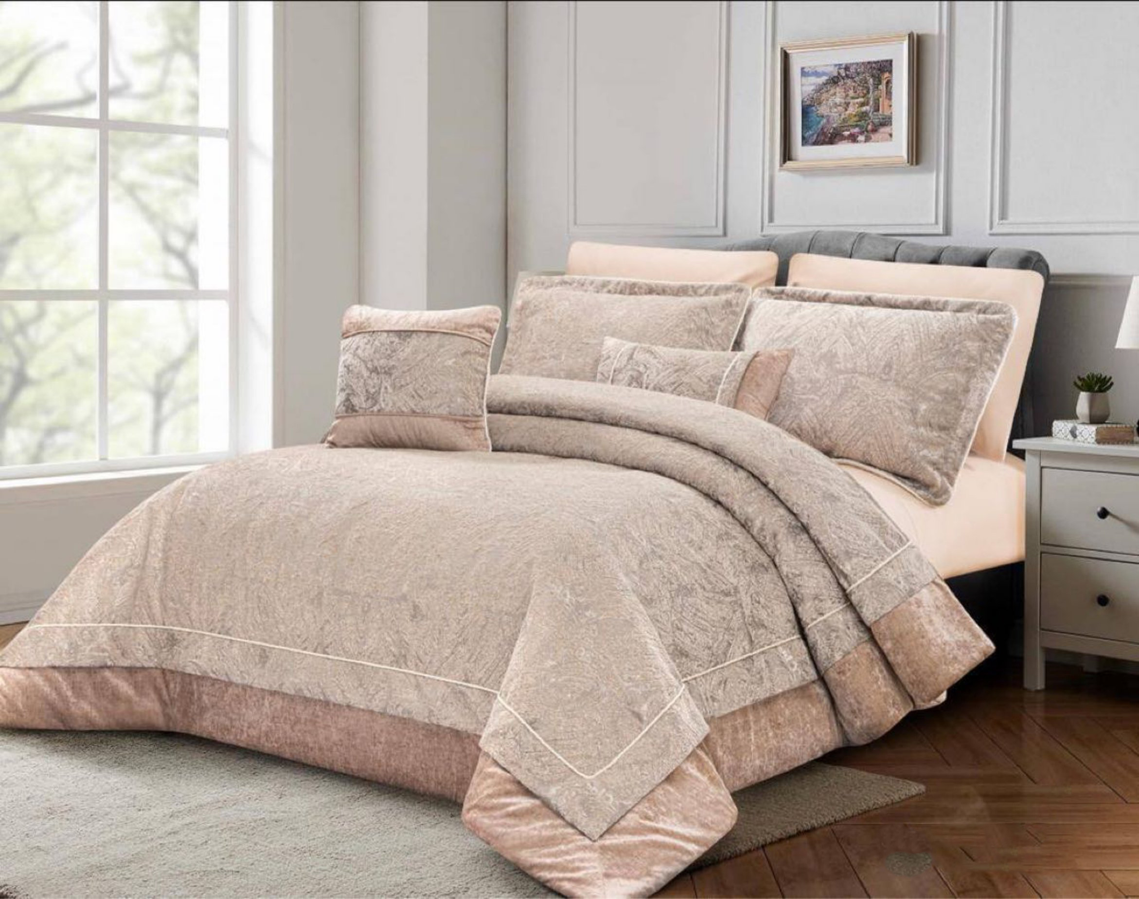 قیمت سرویس روتختی عروس لامیسون کاردلن مدل Eva رنگ نسکافه ای دو نفره (کینگ) 7 تکه